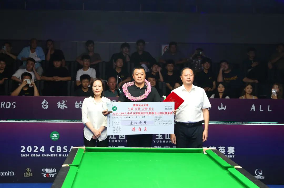 6月27日晚上,中国·江西·上饶·玉山2024CBSA中式台球国际职业联赛玉山国际精英赛圆满闭幕。孔德京以41-40的比分绝杀何文冲夺得冠军,成功捧起全新亮相的“中式台球职业联赛王者之杯”,何文冲获得亚军。