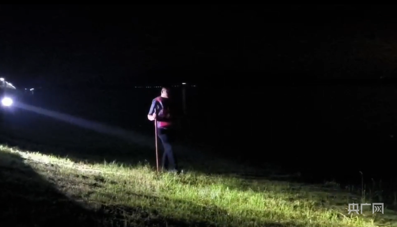 夜间巡护堤坝(央广网发 郑飞华 摄)