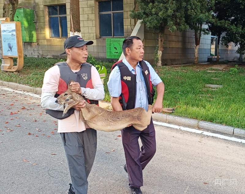 8日清晨6时许,永修县农业农村局渔政执法大队6名护渔员,像往常一样在鄱阳湖区巡查,当经过吴城镇朱市湖水域时,发现有1只河麂在洪水中艰难挣扎,范昭送等护渔队员立即驱舟前往,把落水河麂从洪水中救上来,随后送往江西鄱阳湖国家级自然保护区吴城保护管理站野生动物救护中心进行紧急救治。
