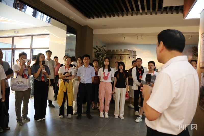 调研团成员们聆听百石战斗的历史(央广网见习记者 周蓓 摄)