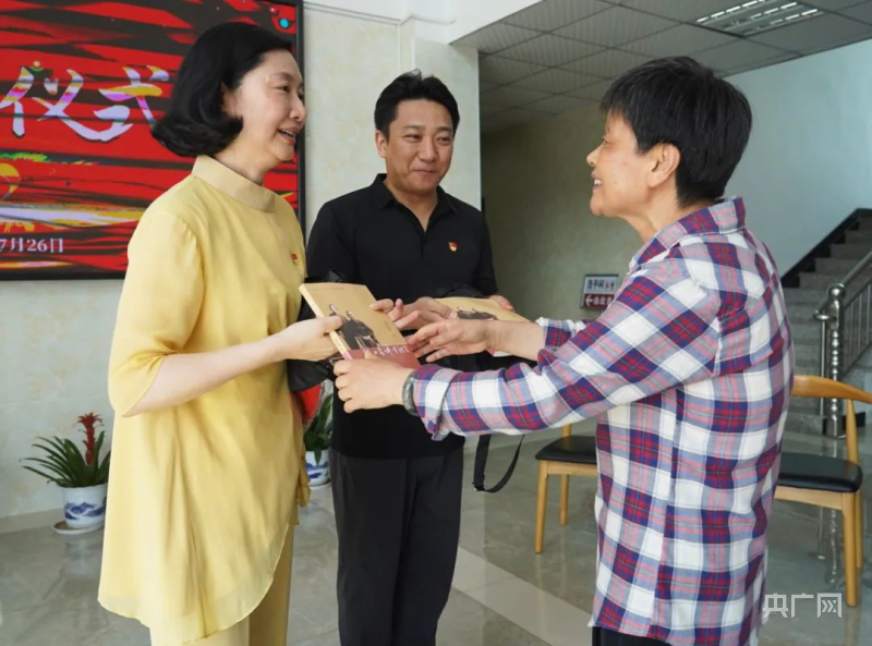 甘公荣向剧组回赠书籍(央广网发 段黎亮 摄)