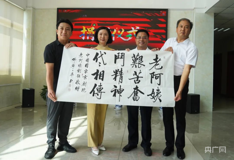 剧组向江西甘祖昌干部学院捐赠书法题字(央广网发 段黎亮 摄)
