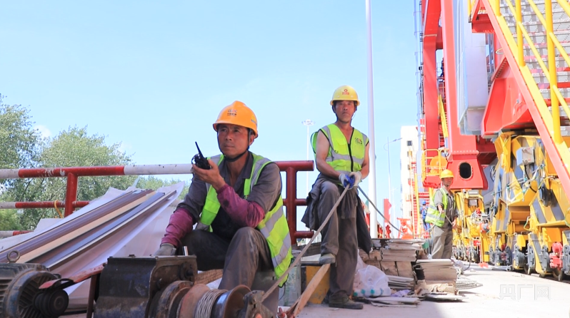 在保证工程质量和进度的同时,项目方把施工时间调整到5:30—10:00、15:00—19:00两个时间段,错峰施工。同时对现场施工工人开展送水、送药、送清凉活动。