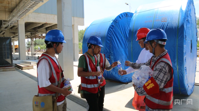 项目方为建筑工人送去矿泉水和防暑药品(央广网发 于慧鹃 摄)