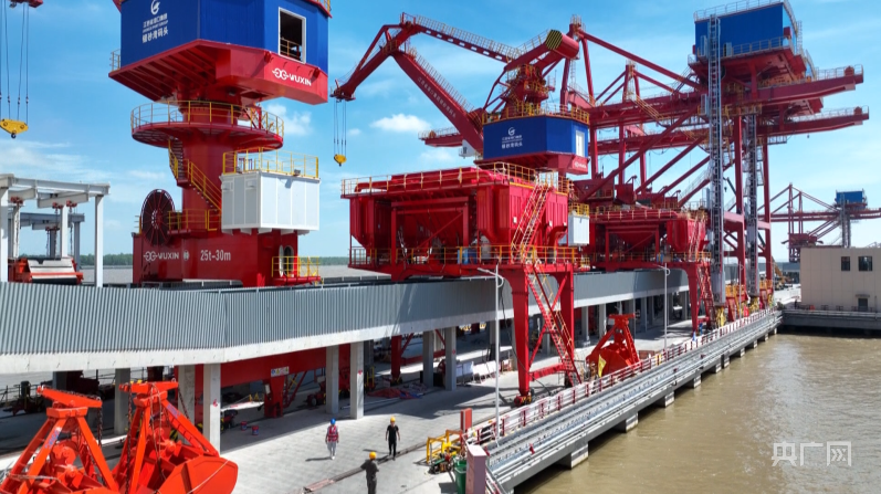“目前我们银砂湾码头项目已经完成了各项附属工程施工作业,现在是进行外部场电接入,争取在今年8月初完成水水中转的交工目标。”银砂湾综合码头工程现场管理项目办副主任肖偲凯向记者介绍。