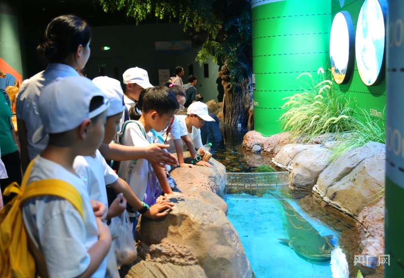在当地的水族馆,研学旅游团实地探秘深海里的“精灵”,近距离观察绚丽多彩的热带鱼、巨大的海龟。在迷人的水下世界,中华鲟、胭脂鱼、娃娃鱼等各种长江和鄱阳湖流域特有珍稀鱼类成群结队环绕身旁,仿佛触手可及。神秘的“水底世界”,生动的科普知识,培养了孩子们从小建立起共同呵护长江、保护长江旗舰物种江豚的意识。