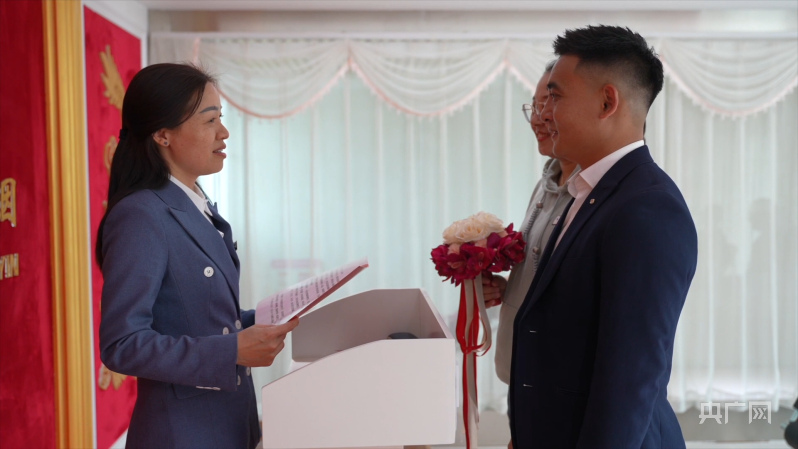 新人在工作人员见证下宣读结婚誓词(央广网发 全南县融媒体中心供图)