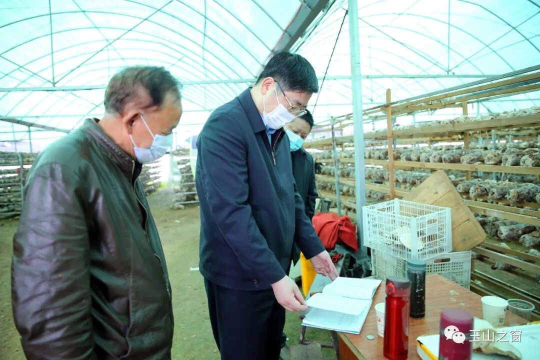 随后,胡剑飞来到玉山县东山底种植农民专业合作社菌菇扶贫生产基地,察看销售账簿,详细了解菌菇产量、市场价格、人工费用、生产成本以及村集体收入、村民差异化分红等情况。他对菌菇生产基地管理、生产表示满意,称赞这是村集体有收入、贫困村民有分红、管理人员有工资的一举多得的好项目。