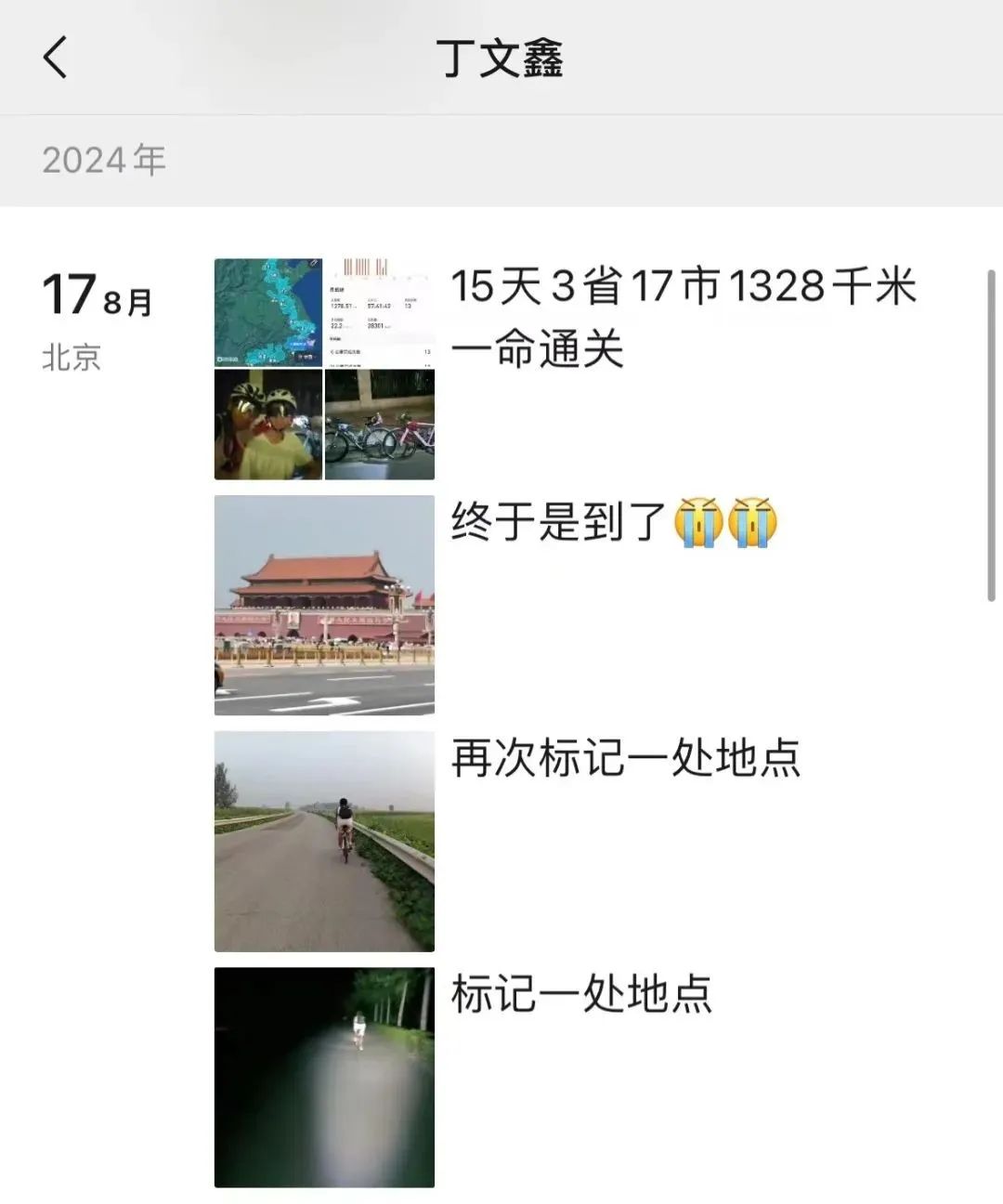 别人坐火车、高铁去学校 丁文鑫同学却骑行15天 经过3省17市 1328公里 来到北京大学报到