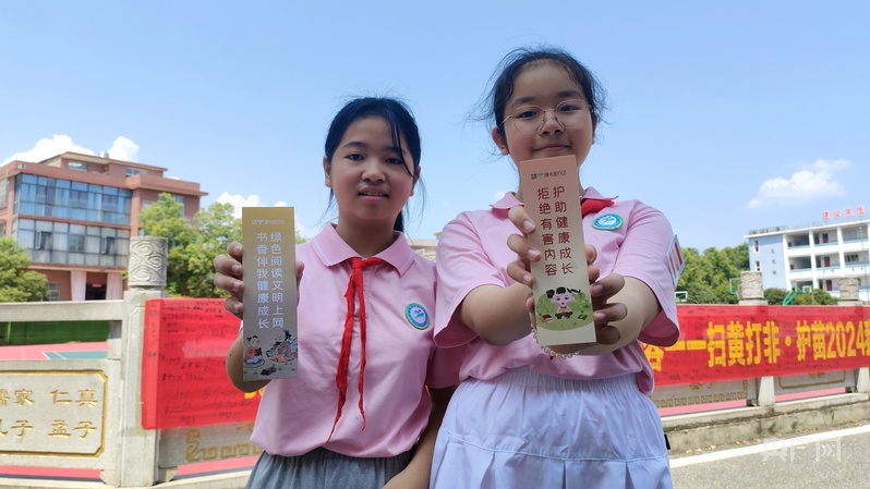 “同学,送你一张绿书签。”“‘扫黄打非’,人人有责,让我们一起抵制有害信息。”……在学校学生报到处,一张张正面印有“书香伴我健康成长,绿色阅读文明上网”“争做文明健康公民,拒绝盗版出版物”等文字,背面印有“县博物馆、孽龙洞、烟花”等上栗县地标特色图案的书签,分发到学生手中。