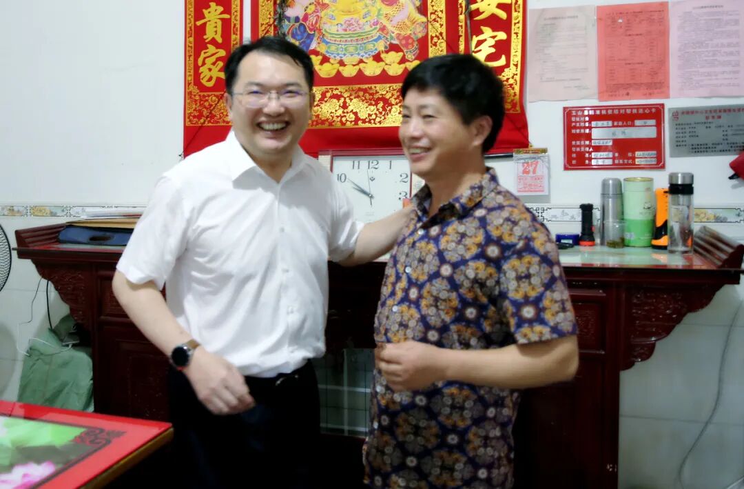 在老党员赵龙民家,徐树斌同他亲切交谈,关切询问家里的情况。赵龙民出生于1957年,1976年6月入党,党龄43年,生育一女一儿,儿子因病不幸去世,女儿已出嫁,夫妻俩身体欠佳。徐树斌向他表示慰问,嘱咐随行的镇村干部要关心关爱他们的生产生活。