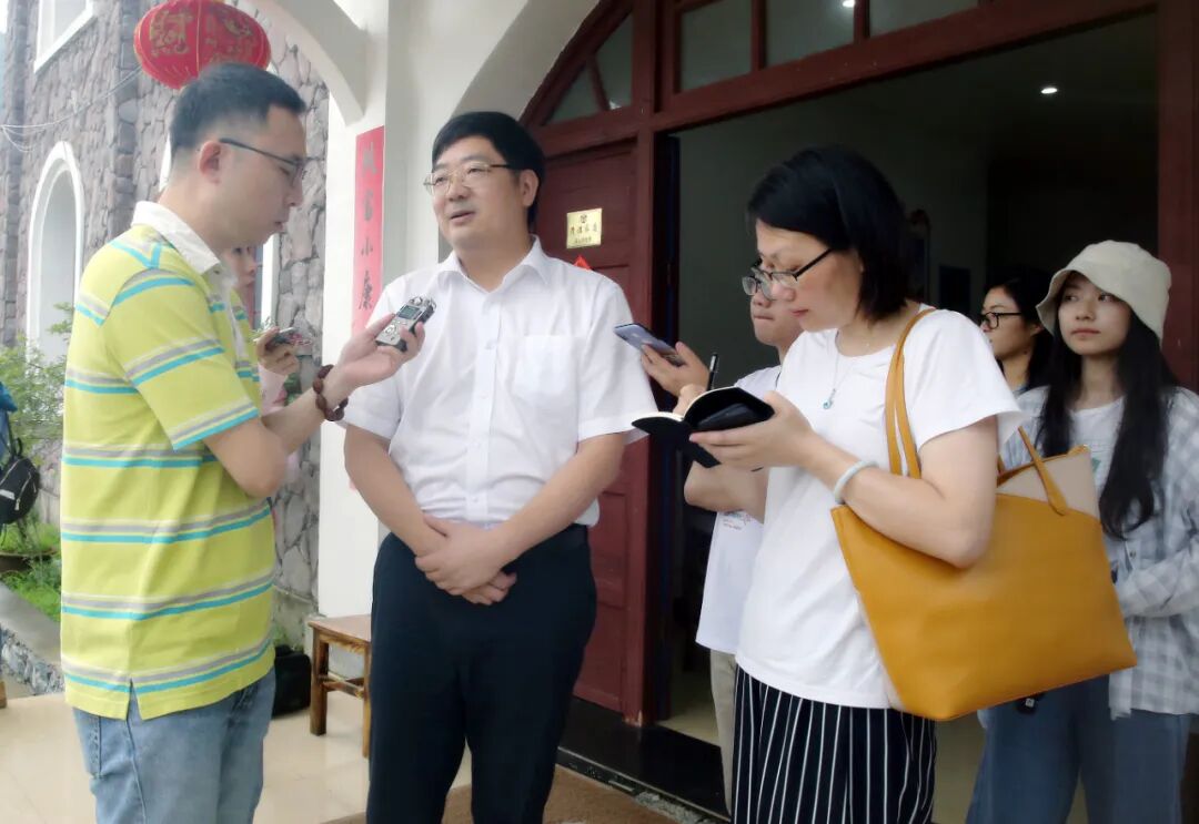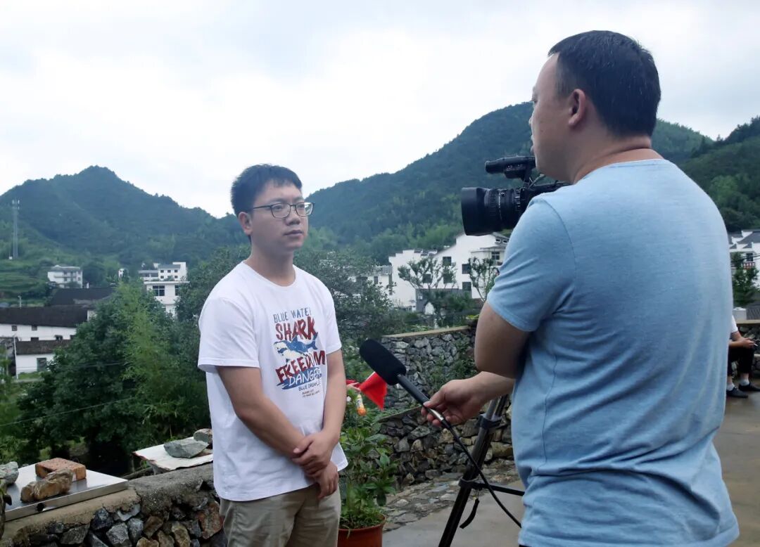 江西广播电视台副台长朱育松带队,县委书记胡剑飞到玉峰村看望采访组一行并接受记者采访,县委常委、宣传部长汪美玉,县人大常委会副主任、怀玉山风景区党工委书记占卫忠等陪同点上采访。