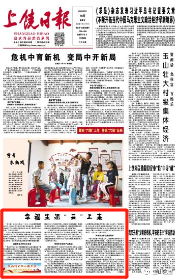近日,上饶日报刊发了《幸福生活“云”上来》一文,点赞玉山县推进“数字乡村”建设发展情况,数字经济正在改变着乡村、改变着农民的生产生活方式。现全文刊发,以飨读者。