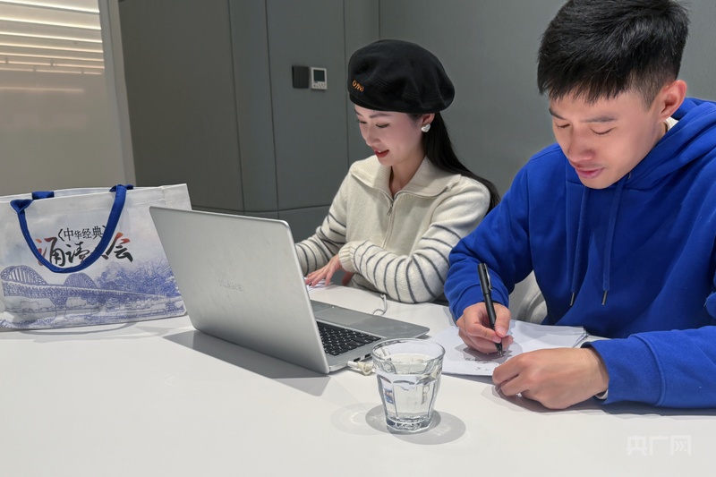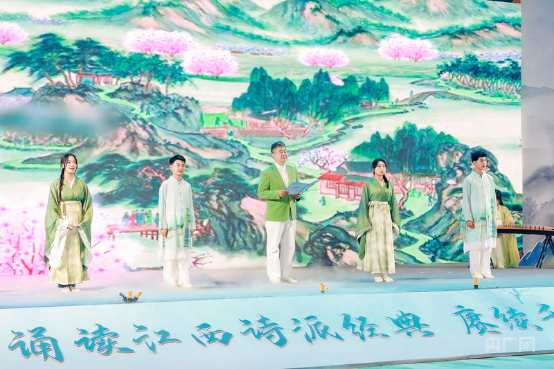 中央广播电视总台主持人苏扬与江西选手深情诵读(央广网记者 胡斐 摄)