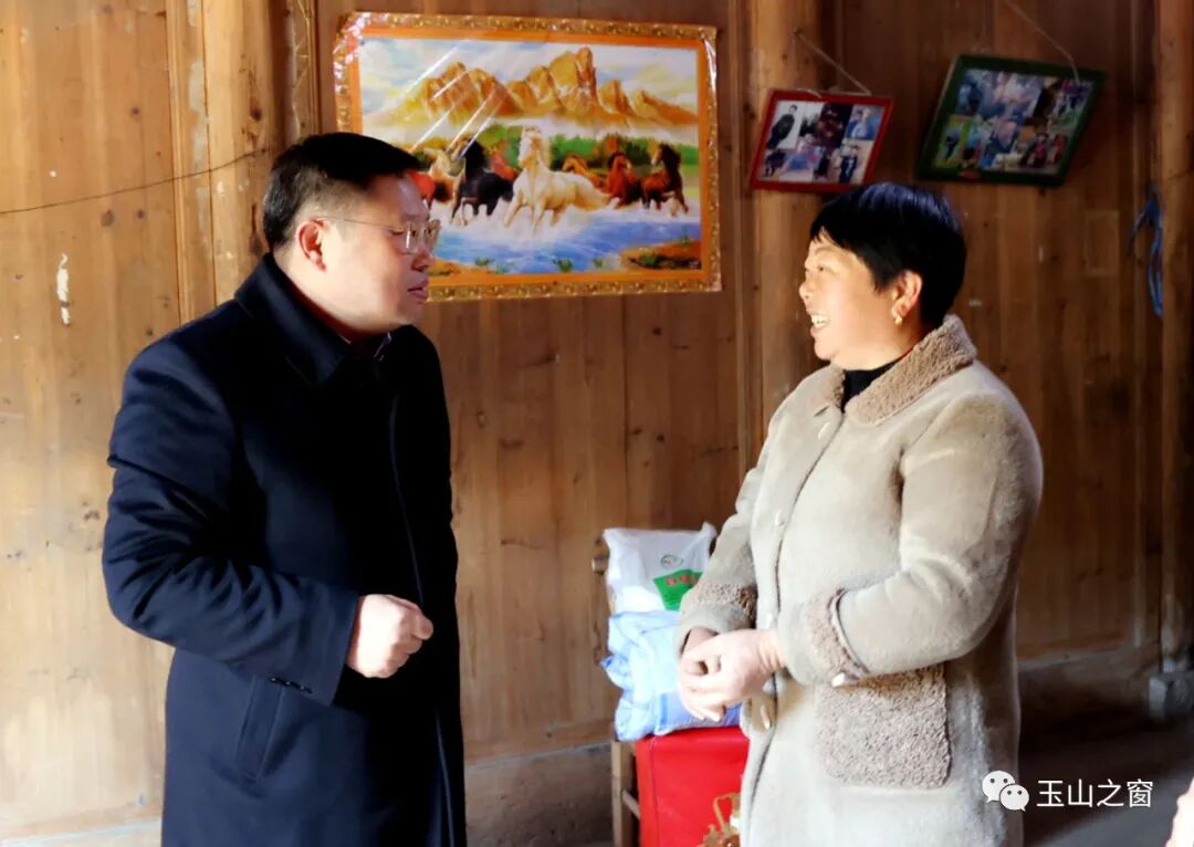 1月18日上午, 市人大常委会副主任、市委秘书长杨建林到怀玉乡玉峰村走访帮扶户,慰问金坪村部分困难群众、老党员、退役军人、生活困难党员,为他们送去党和政府的亲切关怀,并致以新年祝福。县委书记郑国良陪同。