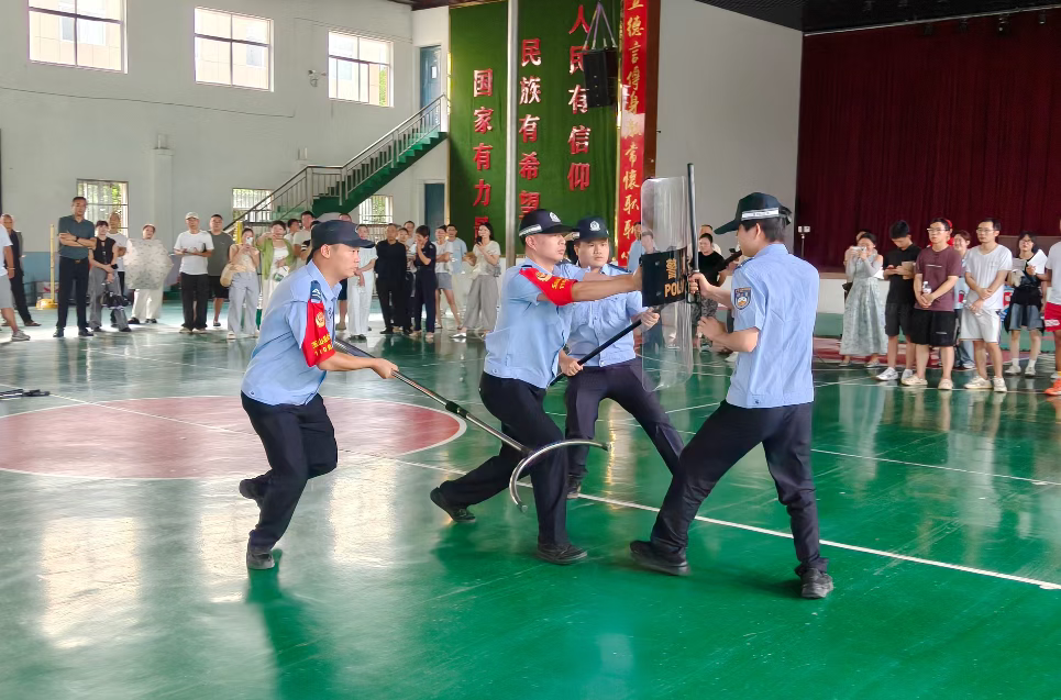 培训中,教官围绕“学得会、用得上、能联动”的目标,系统讲解了“最小应急单元”的职责与作用,强调在突发事件中应做到快速响应、有效控制与规范处置,最大限度保障师生安全。随后通过现场演示,详细教学防暴器械的使用技巧,重点指导参训人员如何运用切斜技术快速控制危险人员,并加强自我防护。