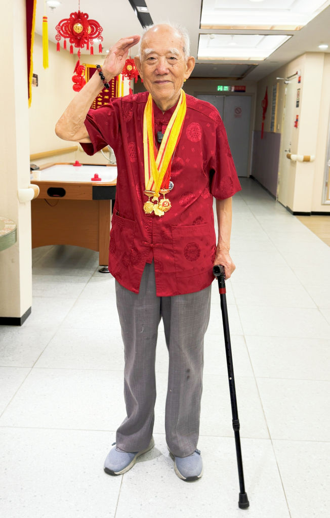 老人胸前佩戴的三枚纪念章,闪烁着温润而永恒的光芒。
