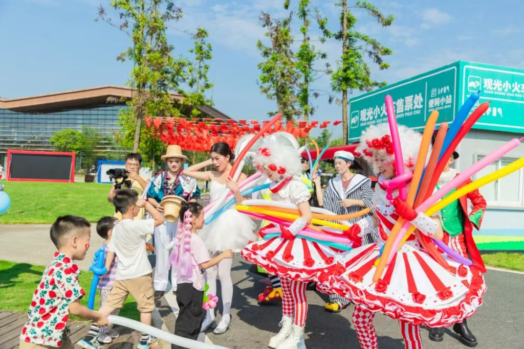 莱杰狂欢秀主题巡游一登场就点燃全场,滑稽的小丑互动、酷炫的杂技表演,引得大人小孩纷纷驻足观看、拍照留念。