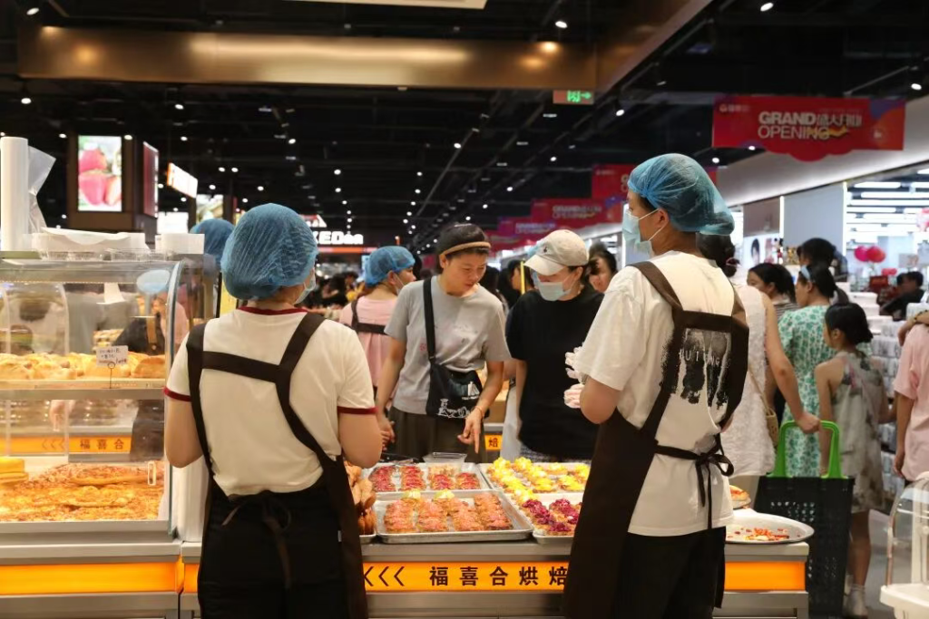 全新升级的地下商超“福喜合”里,顾客摩肩接踵。熟食区香气扑鼻,生鲜区琳琅满目,百货区人流如织。不少市民拎着大包小袋,脸上写满了购物的满足。“以前逛得不过瘾,现在从吃到用,一站搞定!”一位带着孩子的妈妈笑着说道。