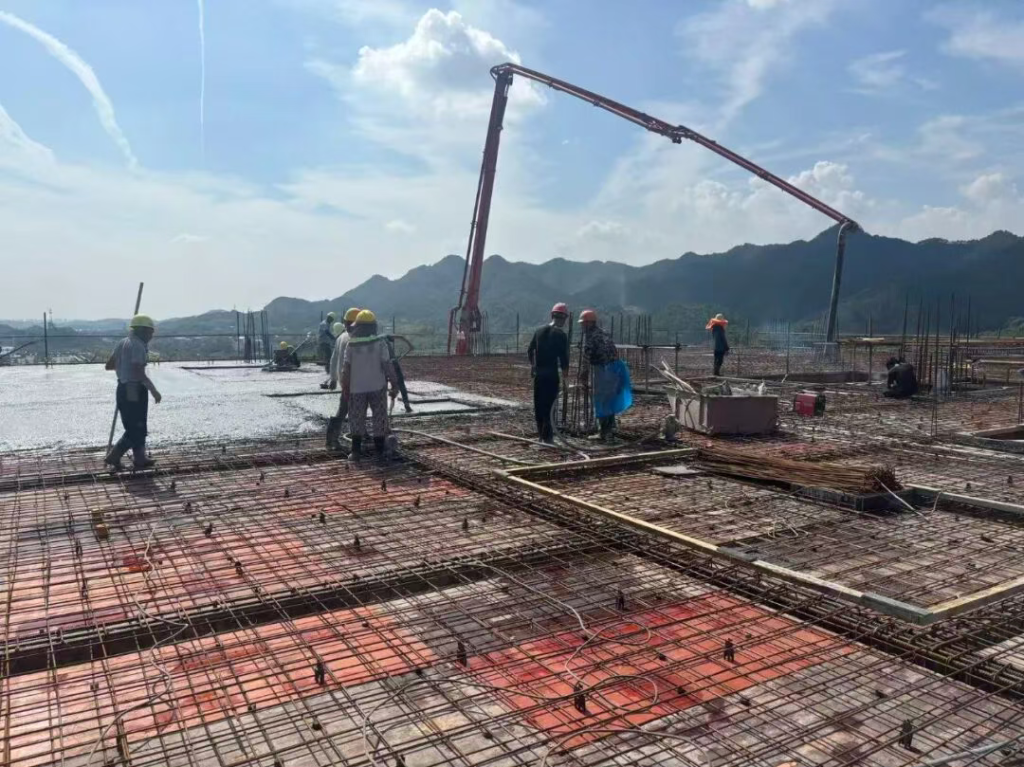 作为浙赣两省从“破壁”到“协同”的典范之作,“衢饶”示范区的核心引擎,共富产业园的建设进度备受关注。国庆期间,园区多个项目点同步施工,主体结构建设、内部装修、外部粉刷、管道铺设、道路平整等工序齐头并进,呈现出一派“多点开花、协同并进”的攻坚场面。