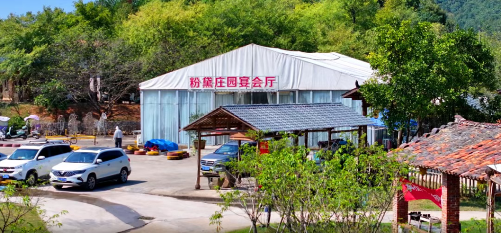 宴客厅内,十人圆桌依次排开,清蒸螃蟹膏黄肥满、带着湖海鲜甜,糖醋里脊外酥里嫩、酸甜汁包裹恰到好处,现捞活鱼经旺火清蒸后,一勺热油、一撮葱丝便能激出极致鲜嫩。亲友围坐举杯,谈笑声、碰杯声与厨房炒菜声交织,升腾起抚慰人心的“烟火气”。“这味道像极了小时候村里办酒席!”在农场办生日宴的王先生格外开心,“比酒店自在,菜好吃、环境开阔,孩子能撒欢,长辈也聊得尽兴。”