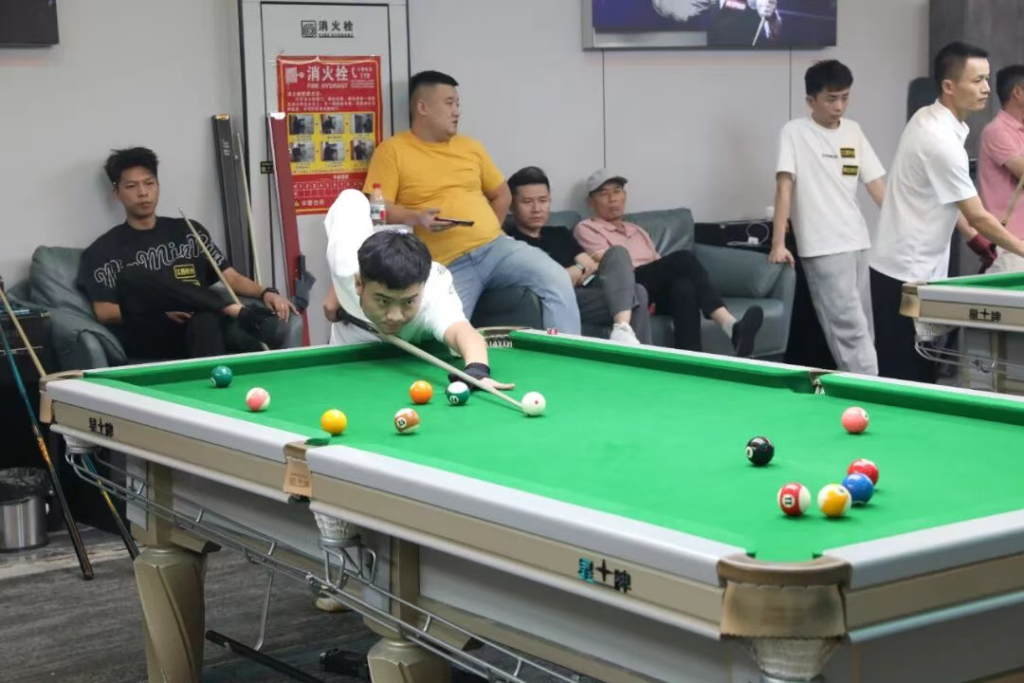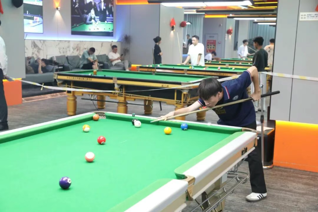 比赛中,选手们尽显专业素养,眼神如炬紧盯球局,精准计算每颗球的走位路径。