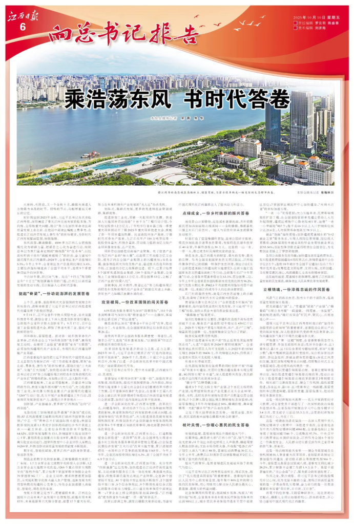 2025年10月10日出版的《江西日报》,以12个整版的篇幅特别策划“向总书记报告”。