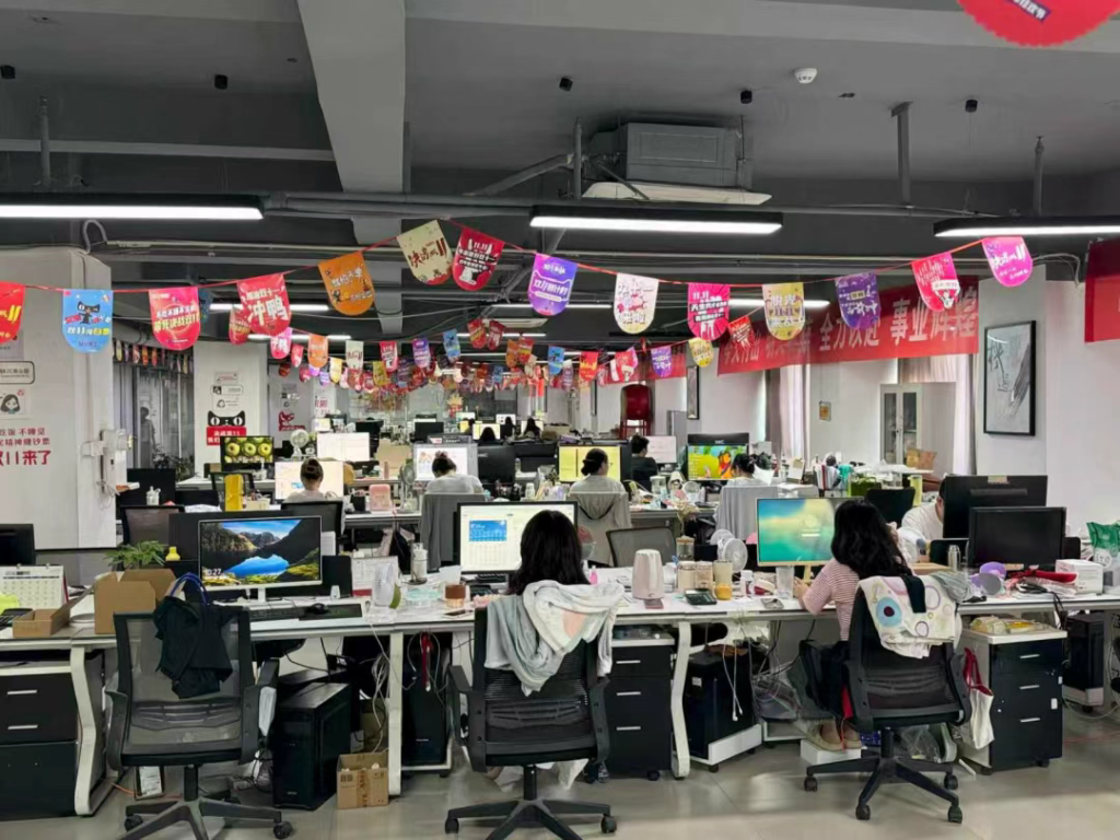 “刷新下方小黄车,来,三、二、一,上链接!”主播面对镜头侃侃而谈,时不时使用化妆刷在脸上涂抹示范,并讲述产品细节……走进南昌市青山湖区魅丝蔻大厦,一家名为江西魅丝蔻化妆用品有限公司(以下简称为魅丝蔻)工作人员正在为即将到来的“双十一”做准备,营销人员、客服、主播等有序忙碌。
