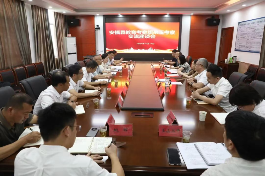 座谈会上,两地教育部门围绕高中办学与教育督导展开深入交流,重点探讨了教学研究、教师发展、学生培养、日常管理、学前教育普及普惠、责任督学队伍建设等内容。考察组对玉山县教育工作给予高度评价,认为玉山县在教育教学管理、教师队伍建设及教育督导等方面的经验做法务实高效、特色鲜明,许多创新思路值得安福县学习与借鉴。并表示希望以此次考察为契机,进一步加强安福、玉山两地在教育领域的常态化沟通与深度协作,推动两地共享优质教育资源、共探教育发展路径,携手破解教育发展难题,共同推动教育事业高质量发展。