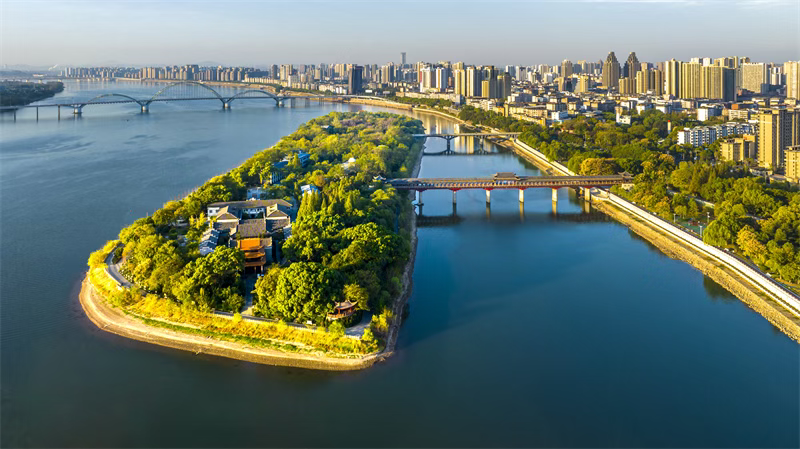 白鹭洲书院和白鹭洲中学位于吉安市内赣江江心的一片绿洲上。白鹭洲书院供图