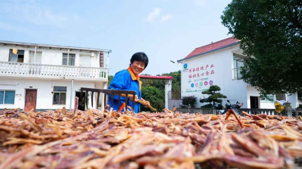 近日,在江西九江共青城市江益镇爱国村的荷塘板鸭制作基地,一排排金黄油亮的板鸭在阳光下晾晒,腊香弥漫在鄱阳湖畔的风里。这里的板鸭不仅承载着共青城60多年的记忆,镌刻着一座城市从荒滩到新城的垦荒史,还是国家地理标志保护产品,其制作技艺更是江西省第六批省级非物质文化遗产代表性项目。