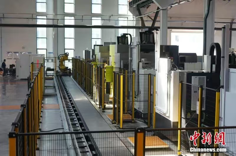 航空装备零部件车间内,智能生产线高速运转。蔡翀 摄