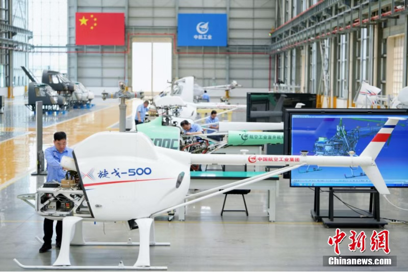 “旋戈-500”系列无人直升机正在装配。汪一舟 摄