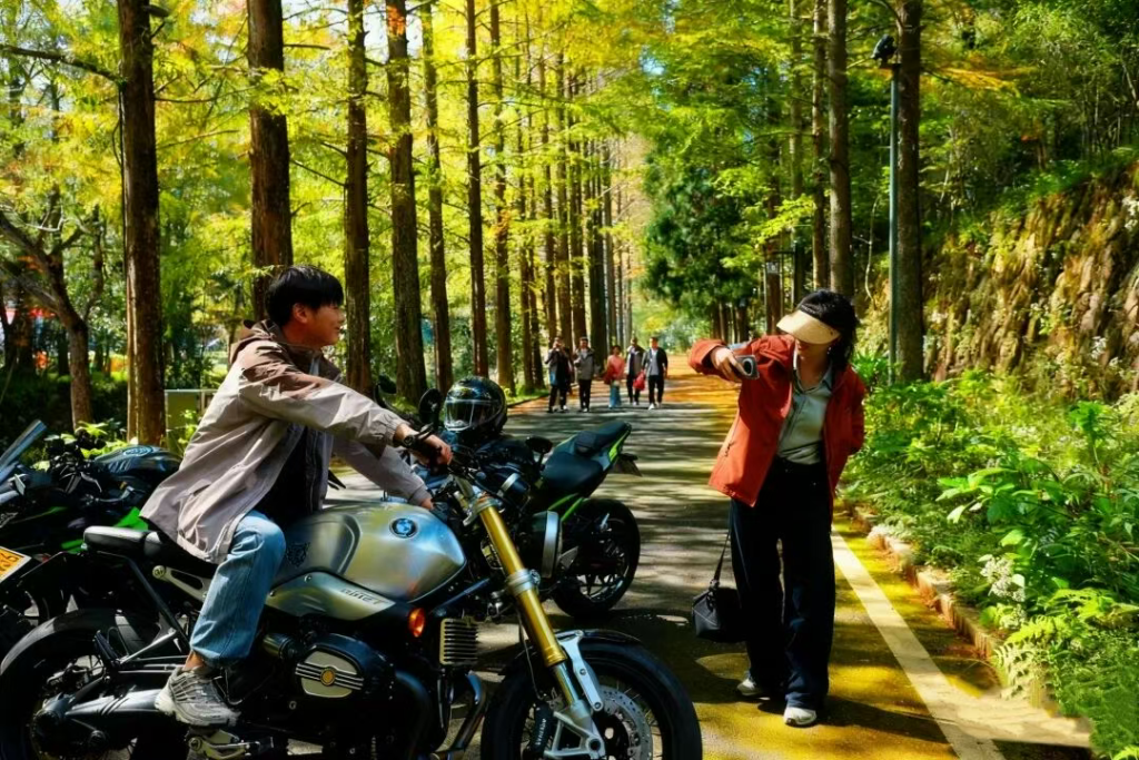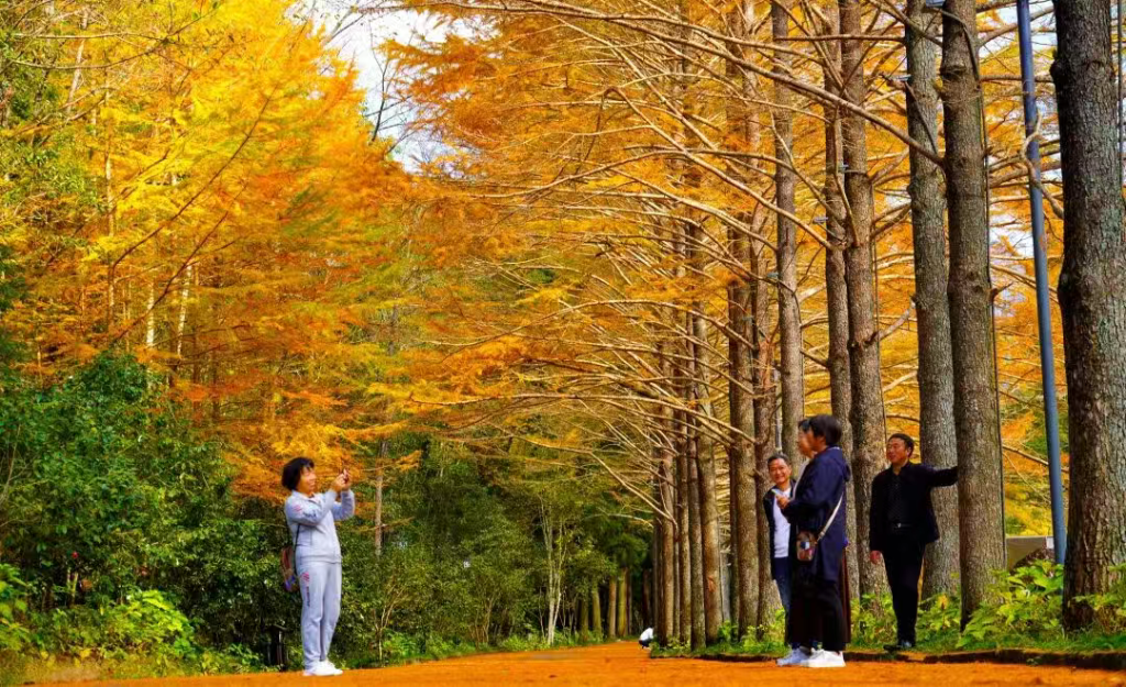 今年自11月中旬起,红杉变色率已达高峰,色彩饱满、层次分明,吸引众多游客前来打卡。骑行爱好者穿梭于山林之间,摄影师蹲守光影瞬间,网红博主借助无人机航拍壮阔全景……红杉林已成为初冬赣鄱大地上一抹不可错过的生态暖色。