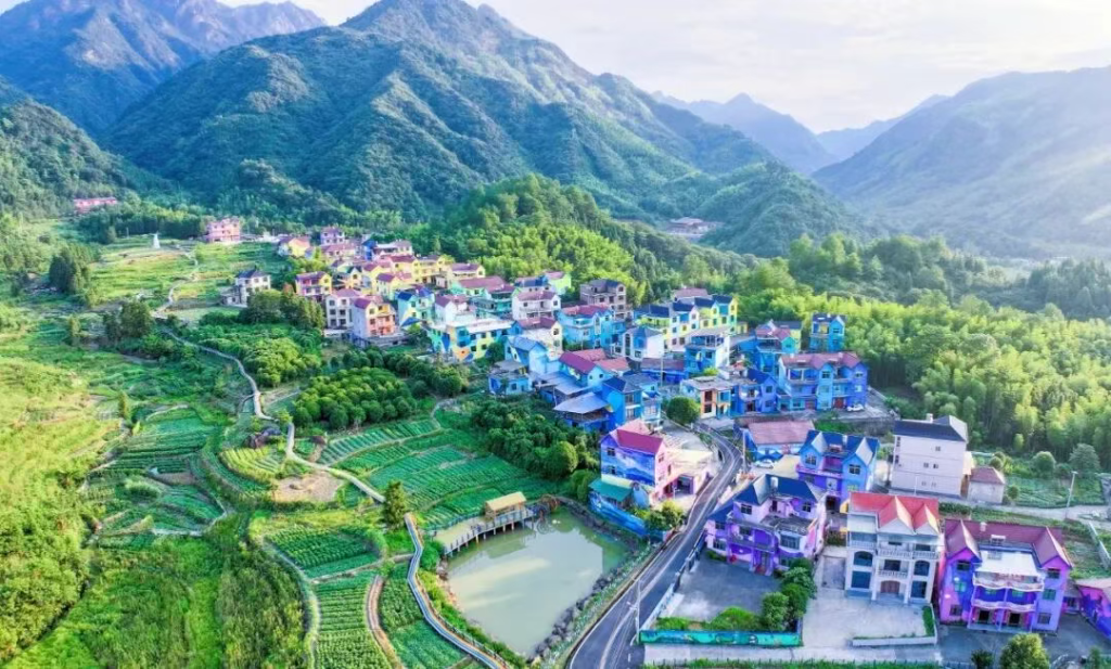 红杉节的热闹不仅停留在景区内。距离不远的黄竹山村,“彩虹童话村”正以另一种姿态吸引游客。当地通过实地调研,推动“艺术+旅游+秀美乡村”融合发展,一幅幅色彩绚丽的墙绘点亮了原本朴素的村庄,一幢幢彩色房屋点缀在群山之间,成为亲子游、摄影打卡的热门目的地。