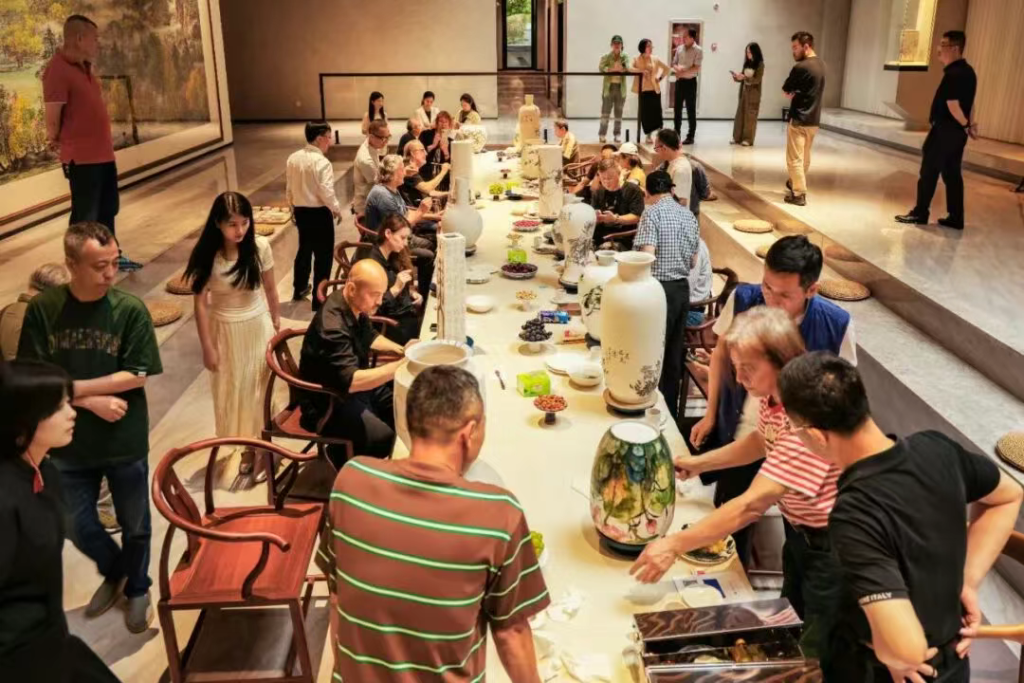 2024年6月9日,10余位来自德国的艺术家与景德镇当地陶瓷艺术大师、部分“景漂”艺术家在三宝瓷源境容美术馆共同开展艺术创作。(图片来源:珠山区融媒体中心)