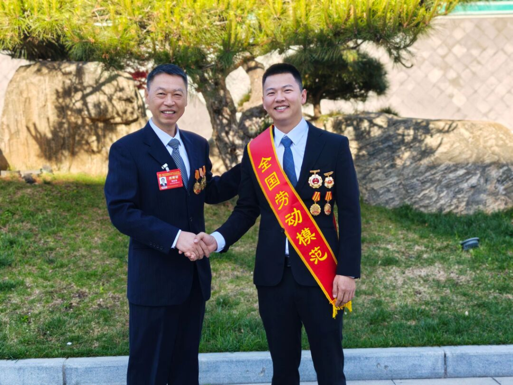 ▲杨准正(右)与同为全国劳模的师傅袁政海(左)合影(受访者供图)