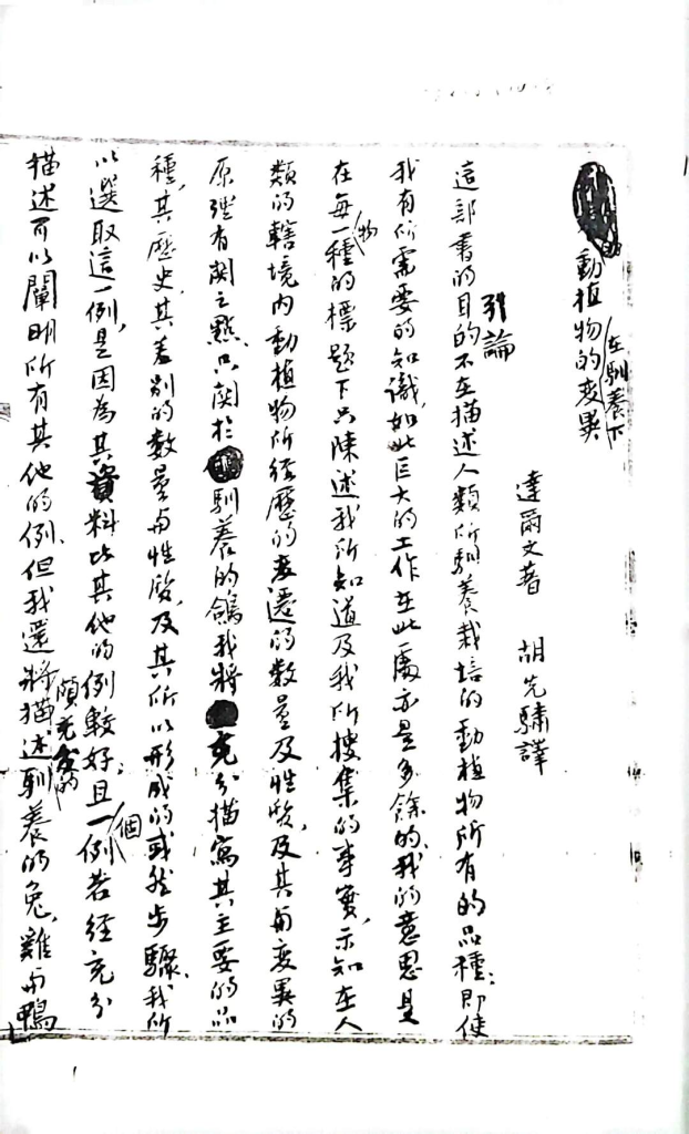 胡先骕翻译达尔文著作(图片由受采访对象提供)