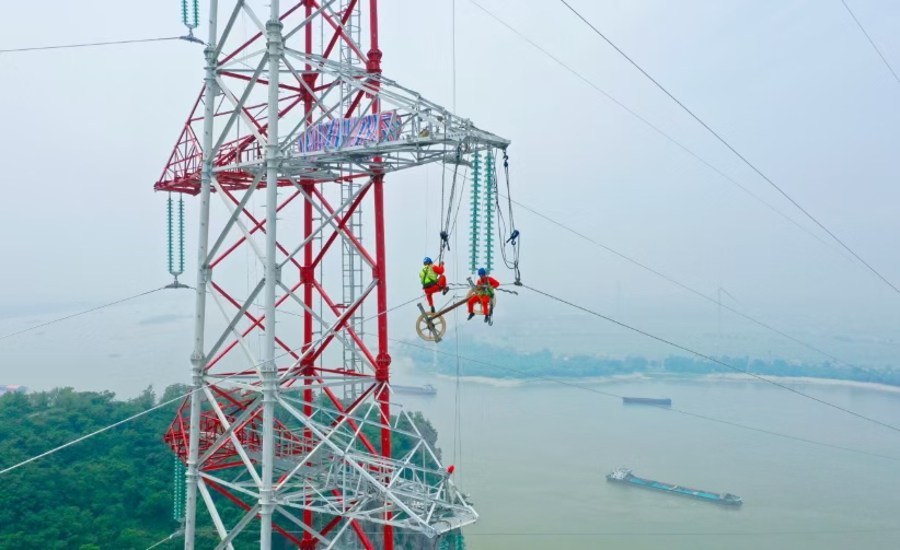 所有设备到位后,施工团队通过“分段吊装、空中对接”的创新方案,成功破解超高铁塔建设难题。当最后一根导线跨越长江,两岸铁塔实现“牵手”的那一刻,胡华和工友们瘫坐在地上,望着江面上的银线,眼里满是泪光:“这根线,不仅是输电线路,更是棉船岛的‘希望线’‘幸福线’!”