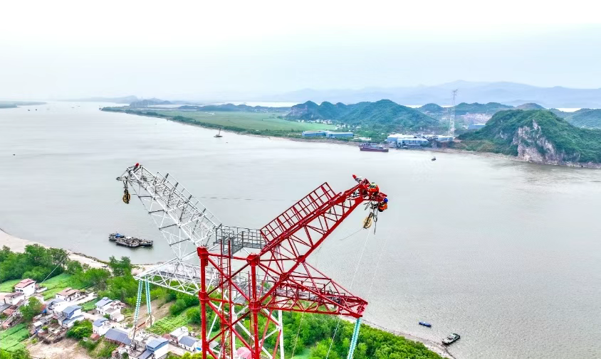 时间回到2025年4月18日,长江江面风急浪高。两座单基重达270吨、高达172.8米的铁塔隔江对峙。在棉船风电项目110千伏配套线路跨长江放线作业现场,江西送变电中建公司线路分公司经理胡华的对讲机里,传来急促的指令:“还有30分钟,交通管制即将结束!”