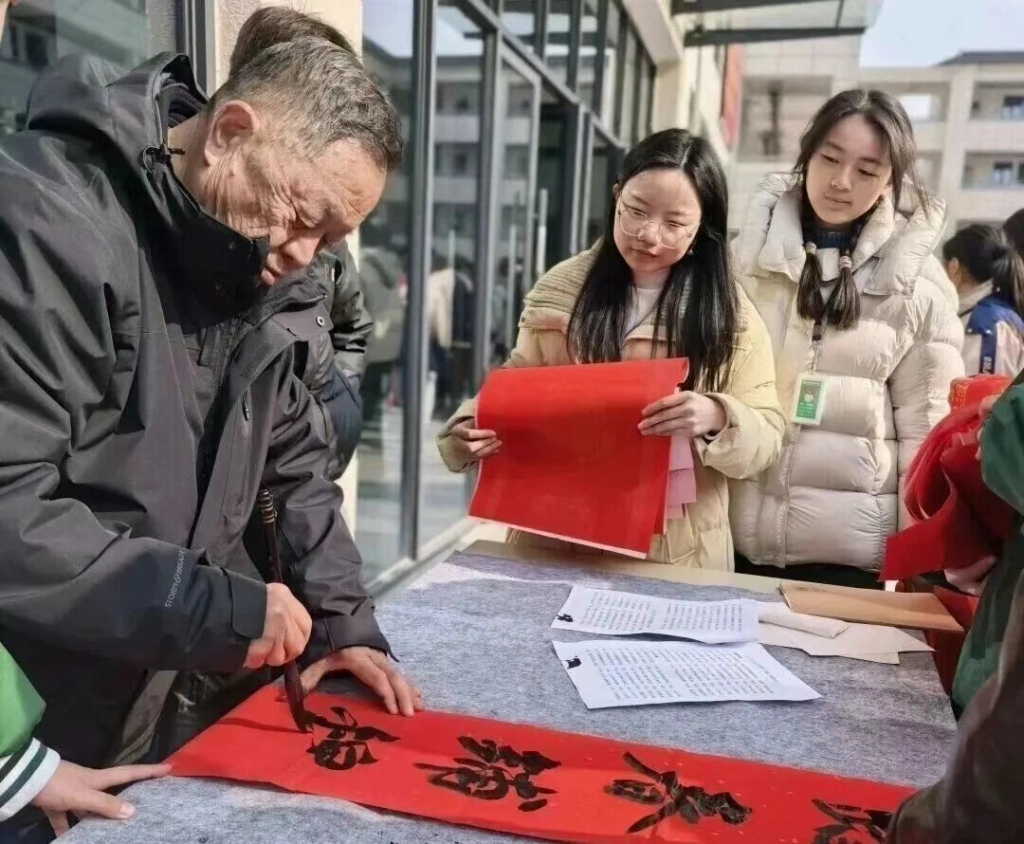 “书法是中华优秀传统文化的瑰宝,春联和‘福’字更是春节不可或缺的文化符号。我们希望通过这样的公益活动,把笔墨书香送进校园,让孩子们近距离感受书法的魅力,了解传统民俗文化,在他们心中播下热爱传统文化的种子。”玉山县书法家协会名誉主席翁社春说道。“万福迎春”公益活动以书法为纽带,不仅为校园增添了喜庆的新春氛围,更让师生们沉浸式感受了中华优秀传统文化的生命力,在潜移默化中厚植文化自信,凝聚起传承文脉的共识。(记者 朱恬怡)
