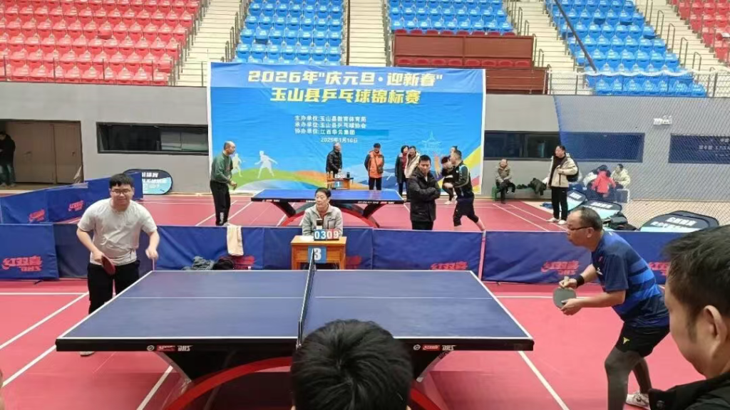 近日,由玉山县教体局主办、玉山县乒乓球协会承办、江西华云集团协办的2026年“庆元旦·迎新春”乒乓球锦标赛在玉山体育中心举行。来自全县各条战线的16支乒乓球代表队齐聚赛场,以球会友、以赛传情。