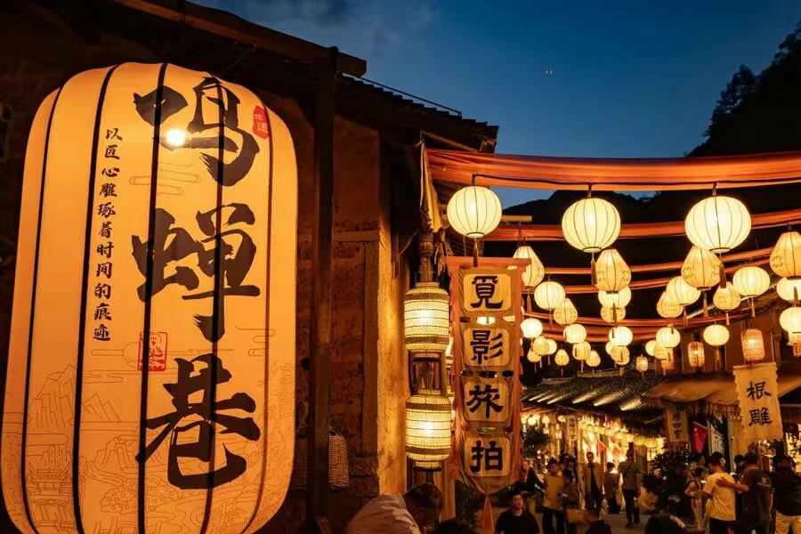 青石板街巷张灯结彩