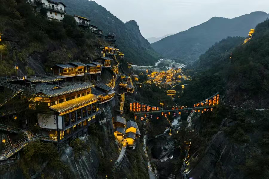 望仙谷的悬崖民宿群