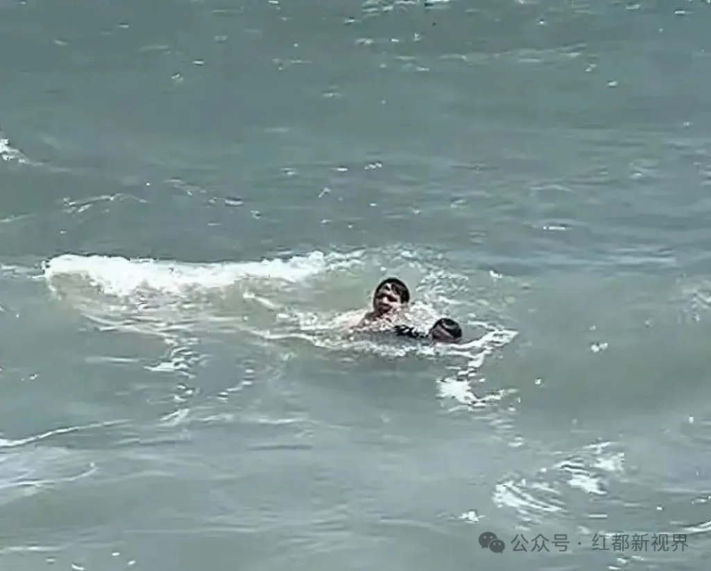 无惧海浪冲击,他三次折返只为救人