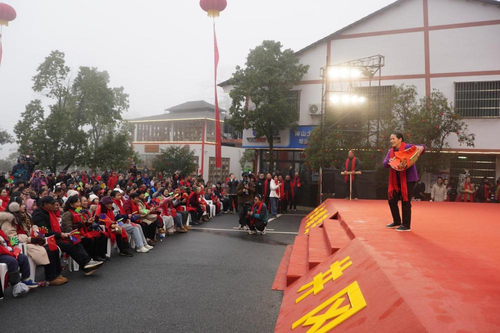 湖南茶陵县湘剧保护传承中心主任陈爱勇和20多名演员带来湘剧《茶陵新韵》,走上神山“村晚”舞台。他们将现代说唱与传统戏曲唱腔有机结合,赢得阵阵喝彩。