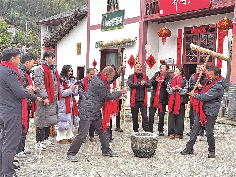 神山村村民打糍粑。本报记者 王斯敏摄/光明图片