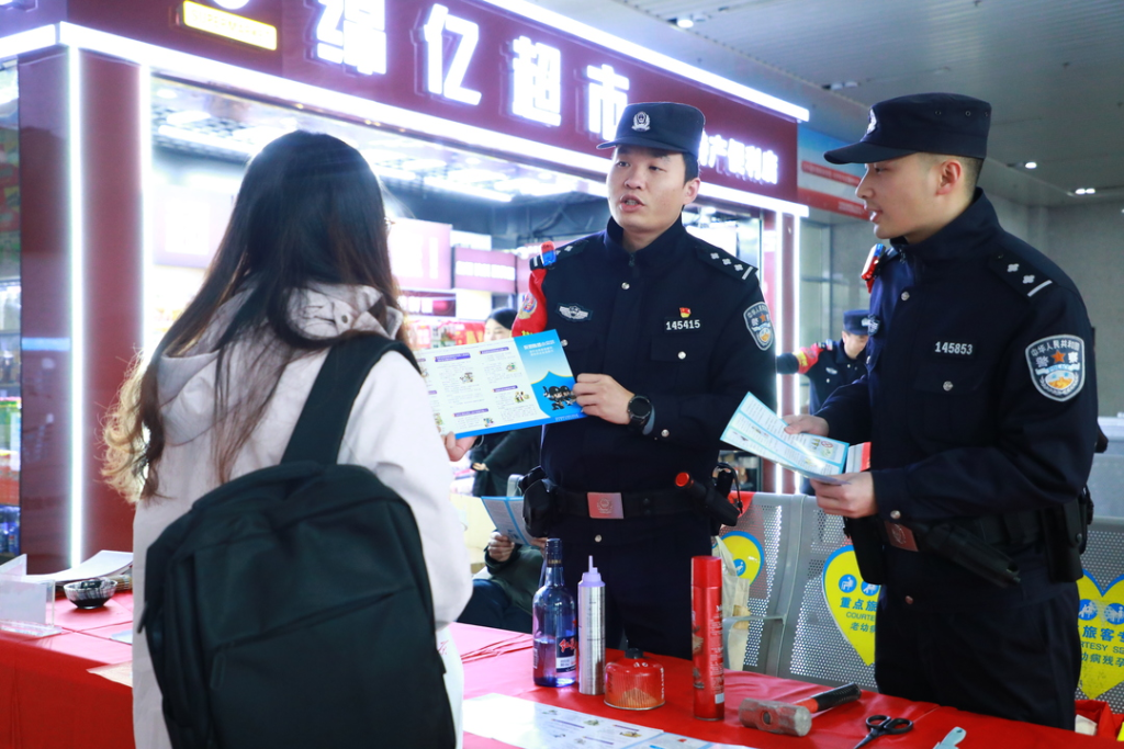 南昌铁路公安处萍乡北站派出所民警向旅客讲解安全常识及出行注意事项。
