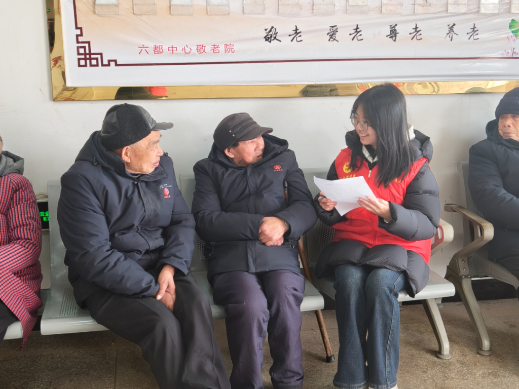 “爷爷,快尝尝这个橘子甜不甜?”“奶奶,您最近身体怎么样?”近日,在玉山县岩瑞镇、六都乡两所敬老院里,我县返乡大学生志愿者开展了以“橘香传暖意,敬老显真情”为主题的志愿服务活动,通过青年大学生的陪伴与行动,将暖意传递到每位老人的心间。