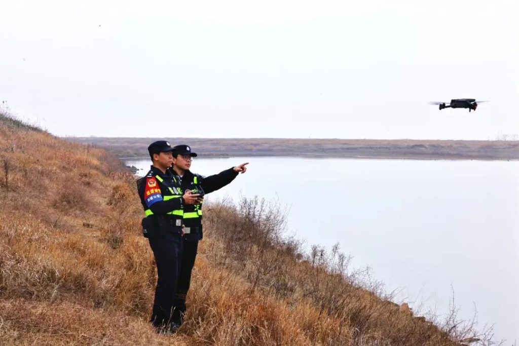 车辆沿着湖岸缓缓前行,空中无人机盘旋巡查,地面民警细致排查,岸边全天候值守,这是昌邑派出所打造的“空中+地面”立体化生态护鸟模式。